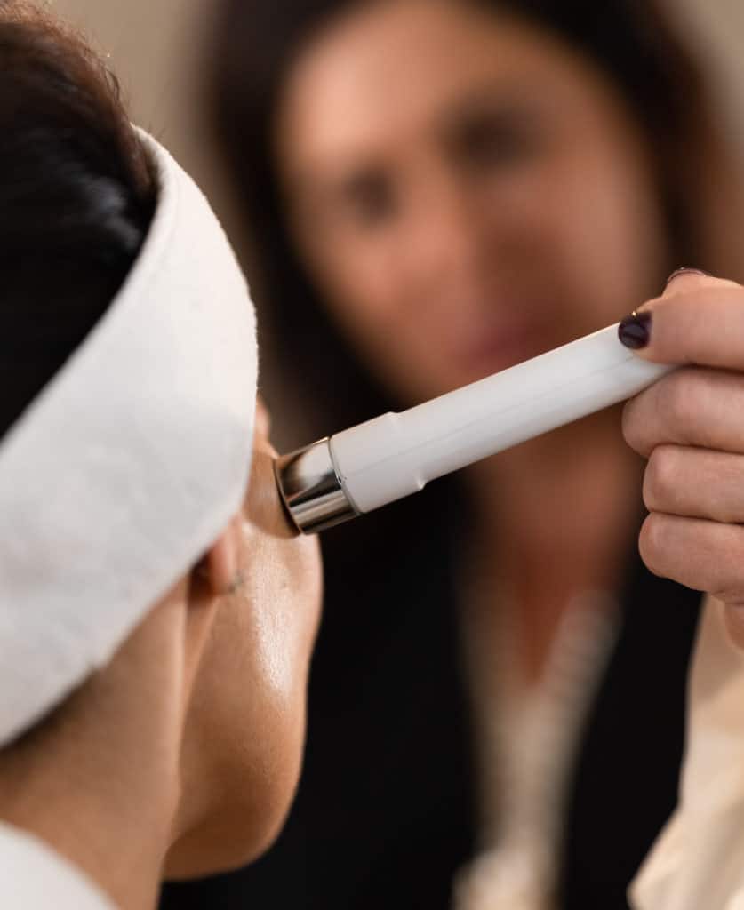 A sharp assessment of your skin quality in a Dr Pauline Burgener Haute Couture treatment space in order to build your skin’s profile at that given moment.