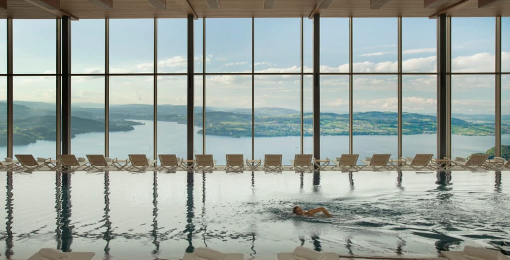At the heart of the Bürgenstock experience is the Alpine Spa, which encompasses an impressive 10,000 square meters dedicated to wellness and relaxation. This state-of-the-art facility features five pools, including an infinity pool with stunning views of Lake Lucerne, saunas, steam rooms, and relaxation areas designed to rejuvenate both body and mind. The spa’s tranquil atmosphere invites guests to unwind in style.